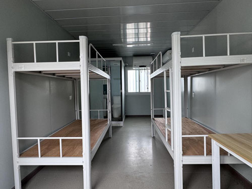 公寓內(nèi)設集宿區(qū)和生活服務配套區(qū),集宿區(qū)有14個管理單元,每個管理單元有20個房間,其中有1間洗衣房(兼開水房),每個房間可住4人,均配置獨立衛(wèi)生間,兩張高低床,空調(diào)和熱水器等設施。