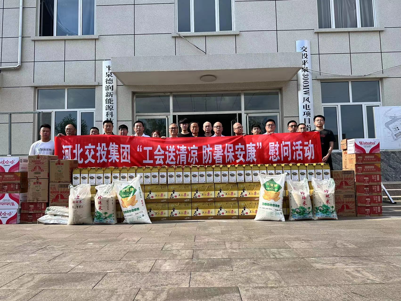 8月8日,河北交投集團工會副主席、黨委辦公室主任趙英會同志,深入晟德基建公司一線,到河北交投平泉300MW風(fēng)光電儲能一體化項目部,代表集團公司工會,開展“工會送清涼、防暑保安康”慰問活動。趙英會同志先后實地查看了進場道路、升壓站建設(shè)、風(fēng)機點位安裝等項目推進情況后,不畏高溫酷暑,向奮戰(zhàn)在一線辛勤工作的干部職工進行了誠摯的慰問,不僅為大家送上了精心準(zhǔn)備的礦泉水、大米、食用油等慰問品,更以親切的話語叮囑