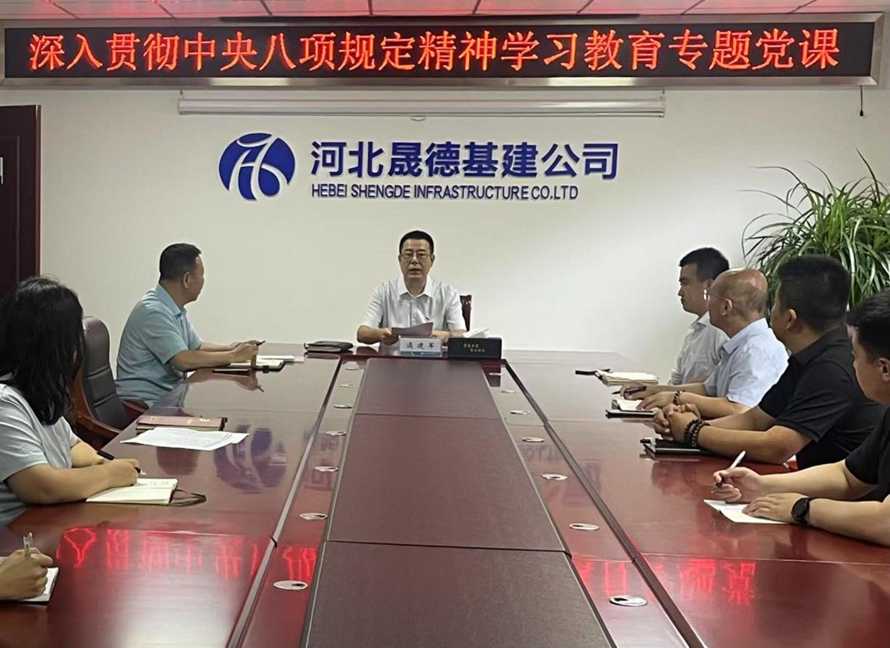 2025年7月10,按照公司黨委統(tǒng)一部署,結合深入開展的中央八項規(guī)定精神學習教育,晟德基建公司黨委副書記、副董事長、總經理遇建軍以《堅守初心擔使命,正風肅紀樹標桿,以中央八項規(guī)定精神為引領譜寫公司發(fā)展新篇章》為題,為所在支部上一堂廉政專題黨課。遇建軍指出,中央八項規(guī)定精神體現(xiàn)了黨從嚴治黨的決心和與人民群眾保持血肉聯(lián)系的態(tài)度。從八個方面對改進作風提出具體要求,以小切口打開大局面,為黨和國家事業(yè)發(fā)展提