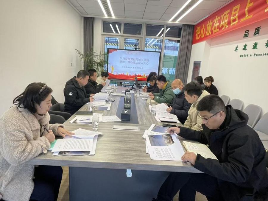 12月4日是第十二個國家憲法日。根據(jù)《關(guān)于做好“憲法宣傳周”有關(guān)工作的通知》的具體部署和要求,河北交投德遠置業(yè)有限公司積極響應(yīng),于12月4日上午組織開展了以“學習宣傳貫徹習近平法治思想,推動憲法深入人心”為主題的學習宣傳活動?;顒悠陂g,公司通過多種形式開展憲法學習宣傳。一方面,組織全體員工集中學習憲法知識,深入解讀憲法精神,讓大家深刻領(lǐng)會憲法的重要意義和豐富內(nèi)涵。另一方面,通過公司小鎮(zhèn)中心沙盤區(qū)的