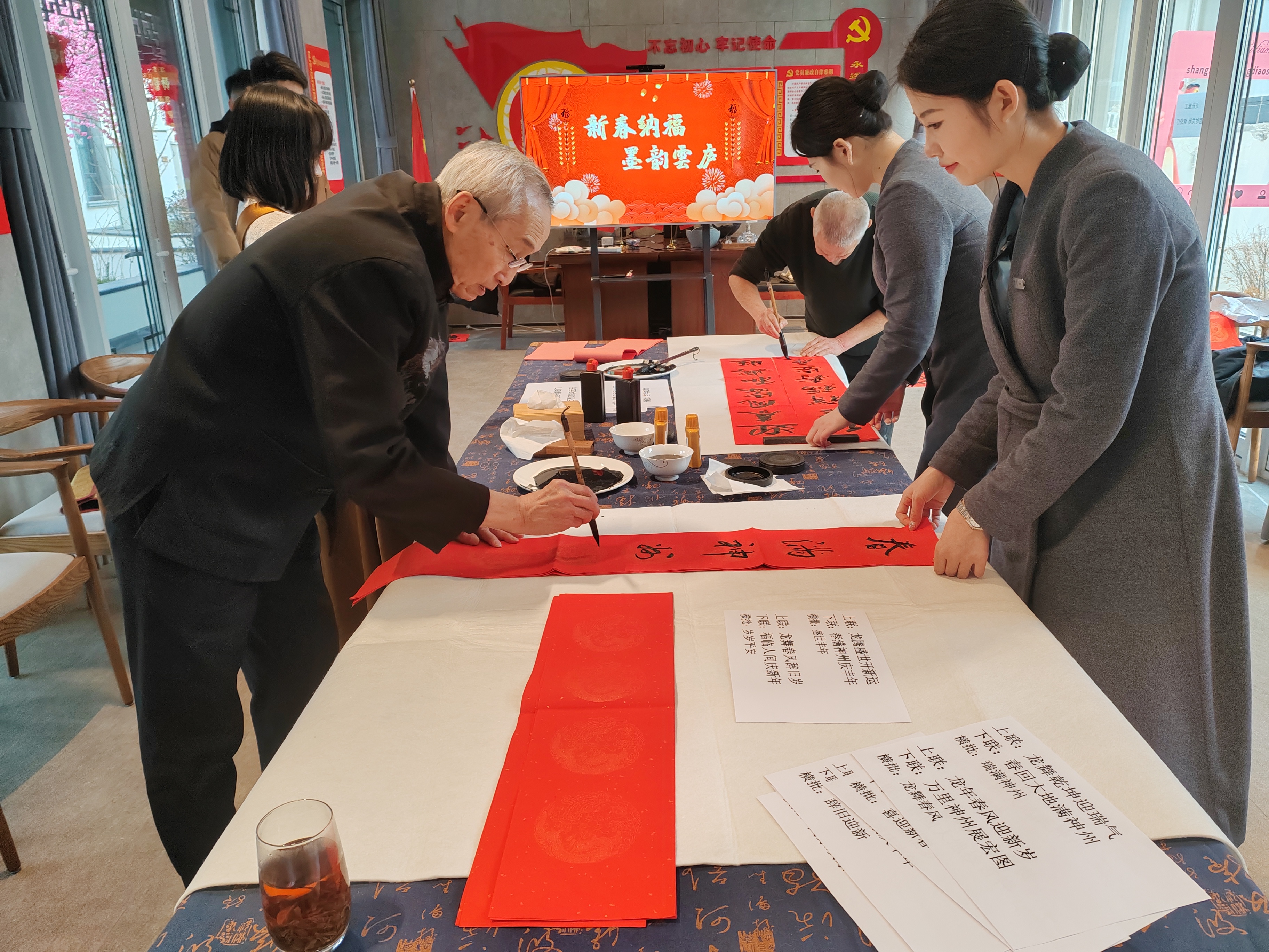 為營造濃厚的新春氛圍,提升新年幸福感,2024年1月30日,德遠(yuǎn)公司在雲(yún)廬小鎮(zhèn)中心舉辦了一場主題為“新春納福,墨韻雲(yún)廬”的活動(dòng)。本次活動(dòng)中,德遠(yuǎn)公司有幸邀請(qǐng)到承德市知名書法家、北京嘉海書畫院副院長高榮昌先生,以及實(shí)力派書法家胡丁院長親臨現(xiàn)場,他們將為廣大客戶和業(yè)主現(xiàn)場書寫春聯(lián),傳遞誠摯的祝福。活動(dòng)現(xiàn)場,兩位書法名家精湛的技藝與墨寶春聯(lián)相得益彰,盡顯新春祝福。項(xiàng)目員工在現(xiàn)場觀摩過程中,聆聽老師們對(duì)書