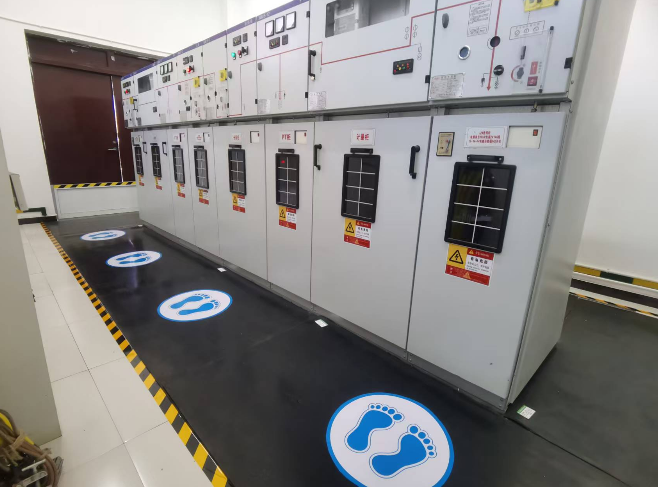 閘站作為防汛工作的重要設(shè)施,其配電房更是保障電力供應(yīng)的關(guān)鍵樞紐,安全管理責任重大。建發(fā)公司嚴格遵循GB 2893-2008《安全色》國家標準,科學(xué)規(guī)劃、精準施策,在5所閘站配電房的操作區(qū)域規(guī)范設(shè)置地面警示標貼180米,安裝安全警示標貼28個。這些標識采用國際通用的安全色標,布局合理、醒目清晰,有效劃定了安全操作區(qū)域,為運維人員提供了明確的操作指引,顯著降低了誤操作風險,切實防范了觸電等安全事故的發(fā)生。