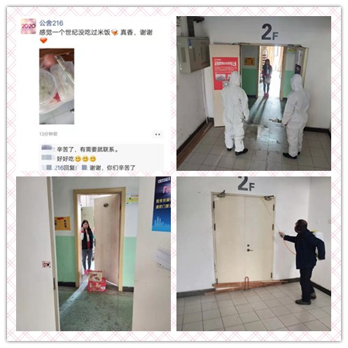建發(fā)公司按照?qǐng)@區(qū)防疫工作領(lǐng)導(dǎo)小組要求,為確保入住員工的生命健康安全,及時(shí)啟動(dòng)應(yīng)急預(yù)案,對(duì)進(jìn)入人員體溫檢測(cè),小劉的幫扶小組,每天通過(guò)微信、電話詢(xún)問(wèn)小劉的身體情況,及時(shí)了解生活需求,免費(fèi)提供一日三餐,幫其代購(gòu)生活用品,并在精神上進(jìn)行鼓勵(lì)支持,幫助排解身心壓力,為這次新冠病毒肺炎疫情控制,構(gòu)筑了一道聯(lián)防聯(lián)治的嚴(yán)密防線。